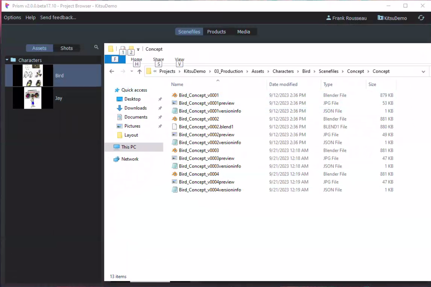 Prism will handle the file organization. With the Kitsu plugin activated, your file hierarchy will be created from the elements set into Kitsu. Your artists are ready to work by opening files matching Kitsu tasks. Prism is capable of using any CGI software to deal with your files. Each task can handle several files and multiple versions for each. You can use multiple tools to work on a task. It will cover all your needs to build any kind of scene.